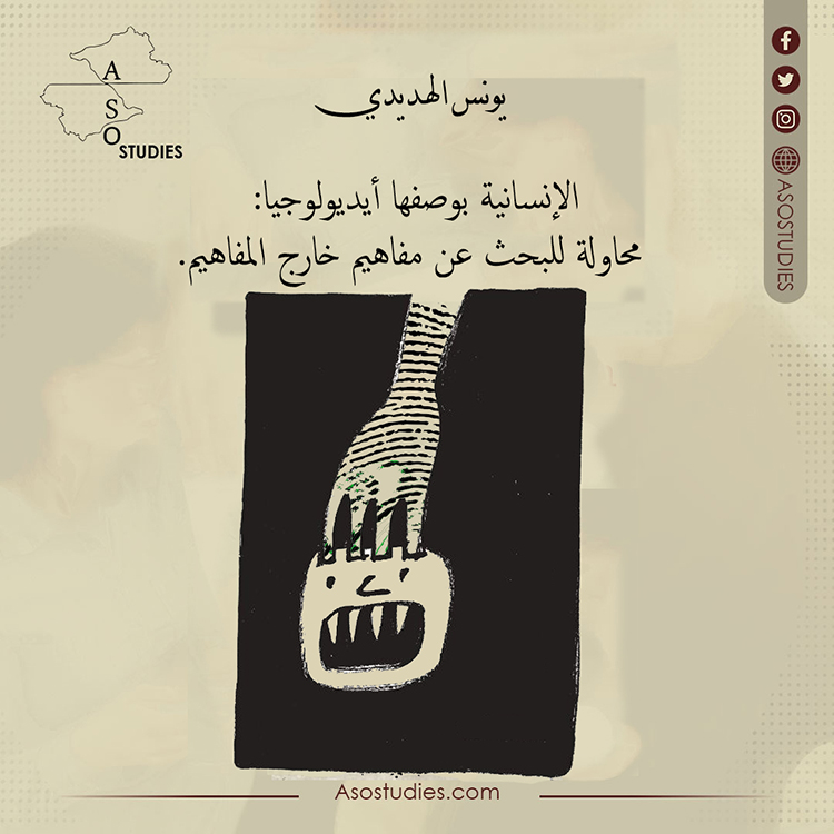 خلاصةُ القول يبدو فهمنا للأيديولوجيا أيديولوجيًّا تشويهيًّا هو الآخر، من جهة كون الإنسانية في تمثلنا مفهوم بارد منزوع الدسم " كيوت" كما يقال؛ إنسانية تنهض على اللاعنف الذي ينحدر بجميع القيم الإنسانية ويُطوِّح في آخر المطاف بالإنسان.